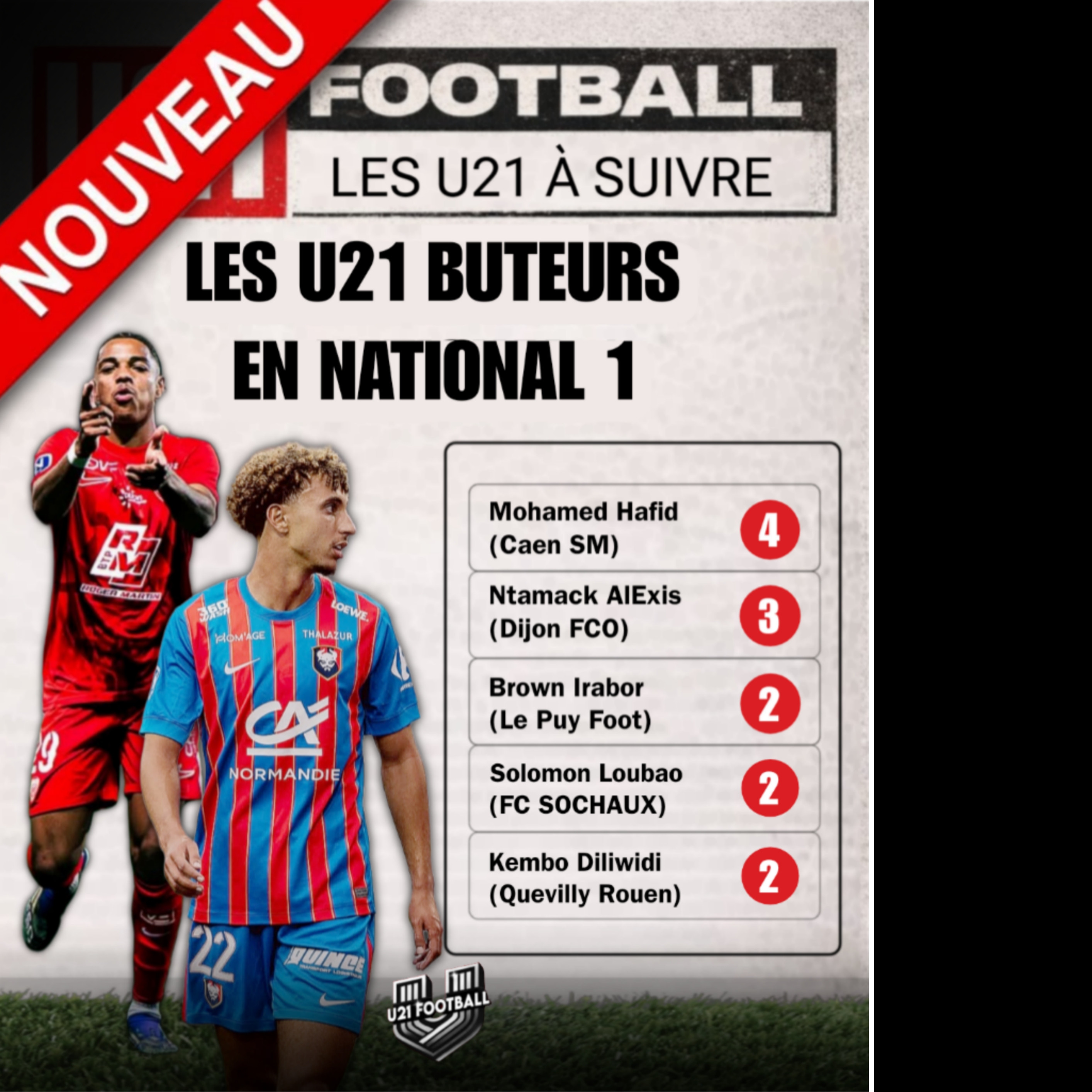 DÉCOUVREZ LES PARCOURS ET LES PERFORMANCES DES MEILLEURS U21 DE NATIONALE 1,2 ET 3, À TRAVERS DES INTERVIEWS, DES FOCUS ET LES ÉQUIPES DU MOIS.