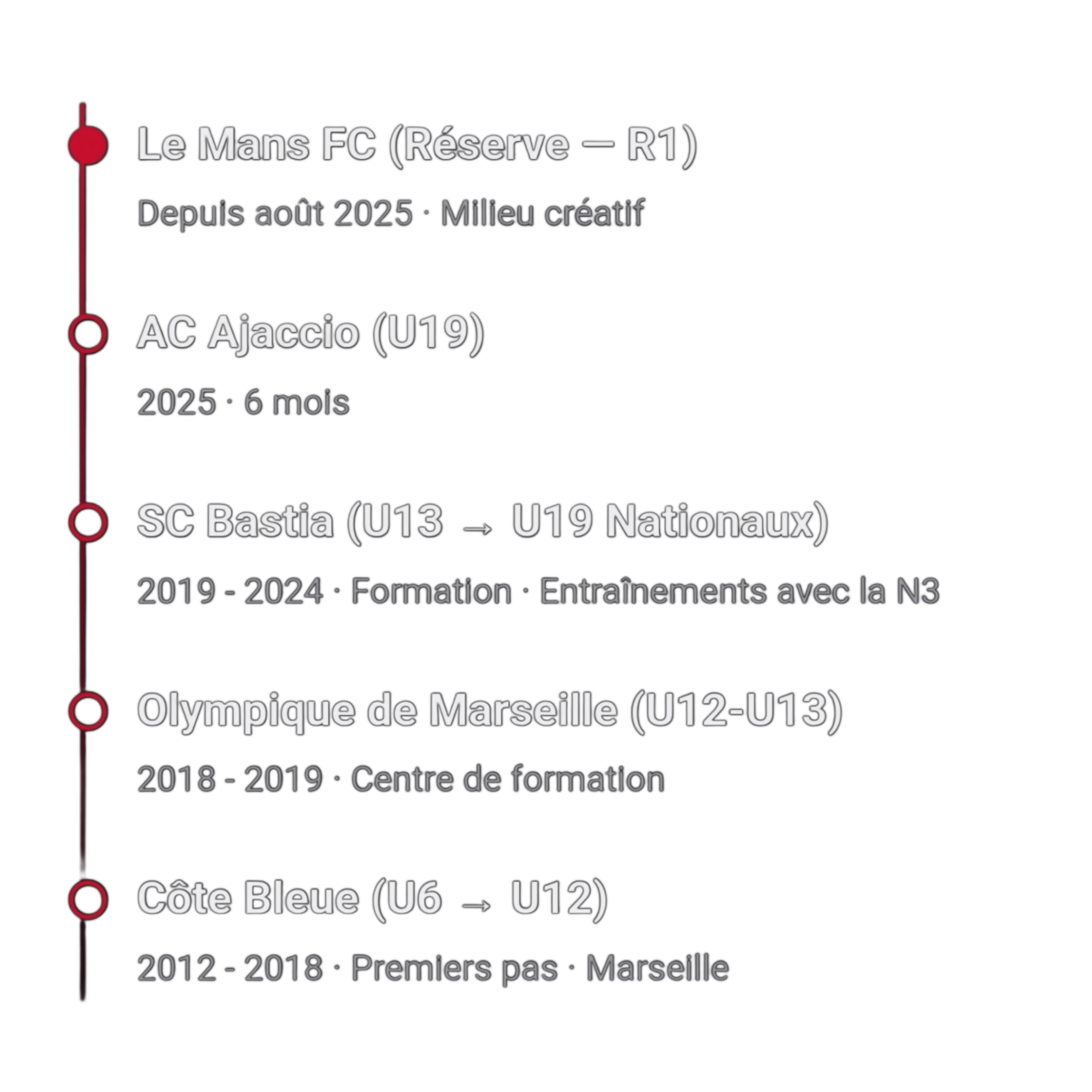 Repéré, il intègre ensuite le centre de formation de l'Olympique de Marseille en U12-U13. Une première expérience dans un club de l'élite qui pose les bases.