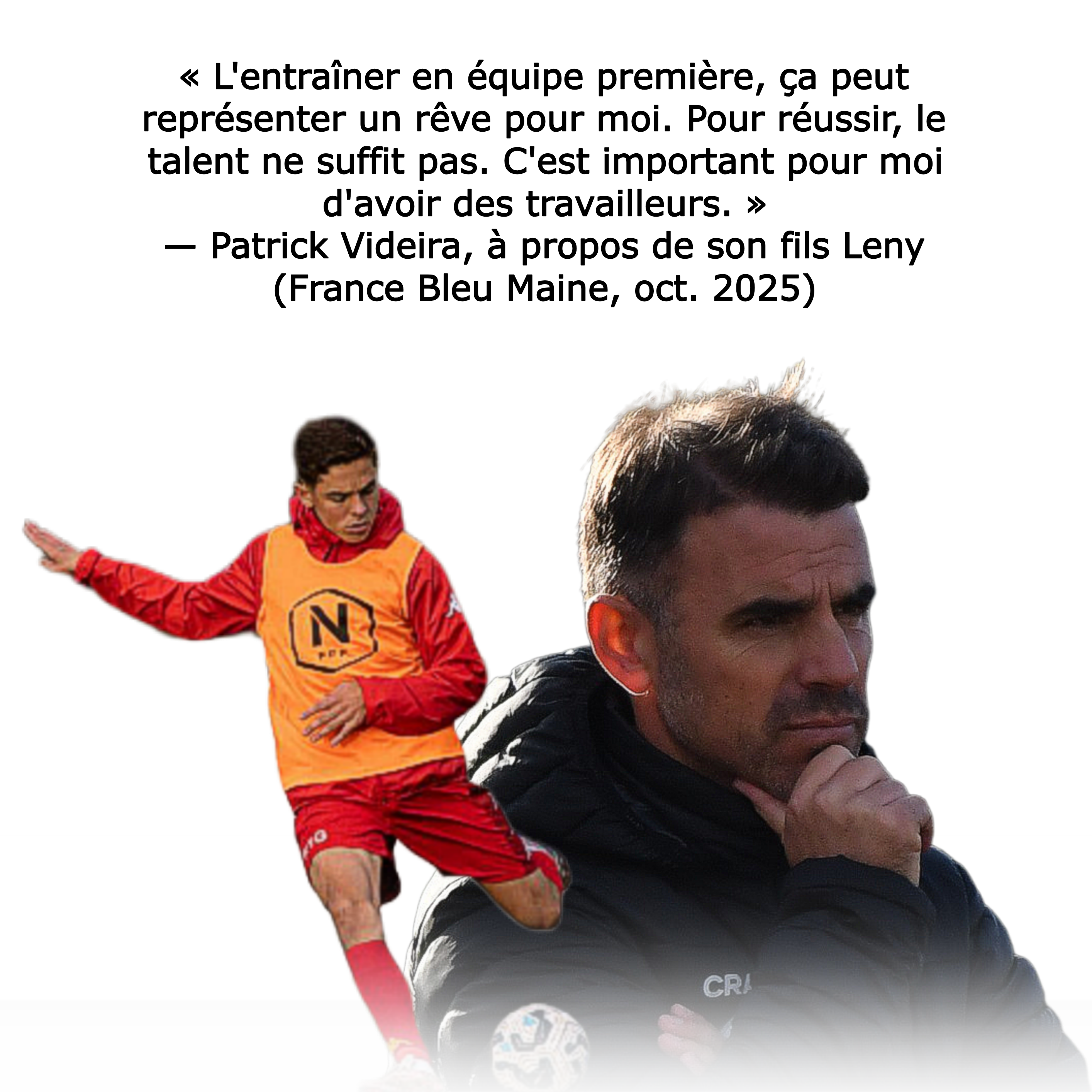 Évoluer dans le même club que son père entraîneur, c'est un défi à part entière. Patrick Videira ne s'en cache pas : il est encore plus exigeant avec Leny qu'avec n'importe quel autre joueur de son effectif. Pas de passe-droit, pas de raccourci et ca Lenny la vu lors des nombreuses séances (une trentain) avec la ligue 2 cette saison .